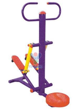 功能:腰部运动。通过活动锻炼腰部两个侧的肌肉群,增强腰、 髋、膝关节的活动能力。 方法:踏步,双手握扶手,肩部与下踩的下肢作反方向扭动,形 似“扭秧歌”动作,扭腰,双手握扶手,上身保持固定, 腰部以下来回转动。